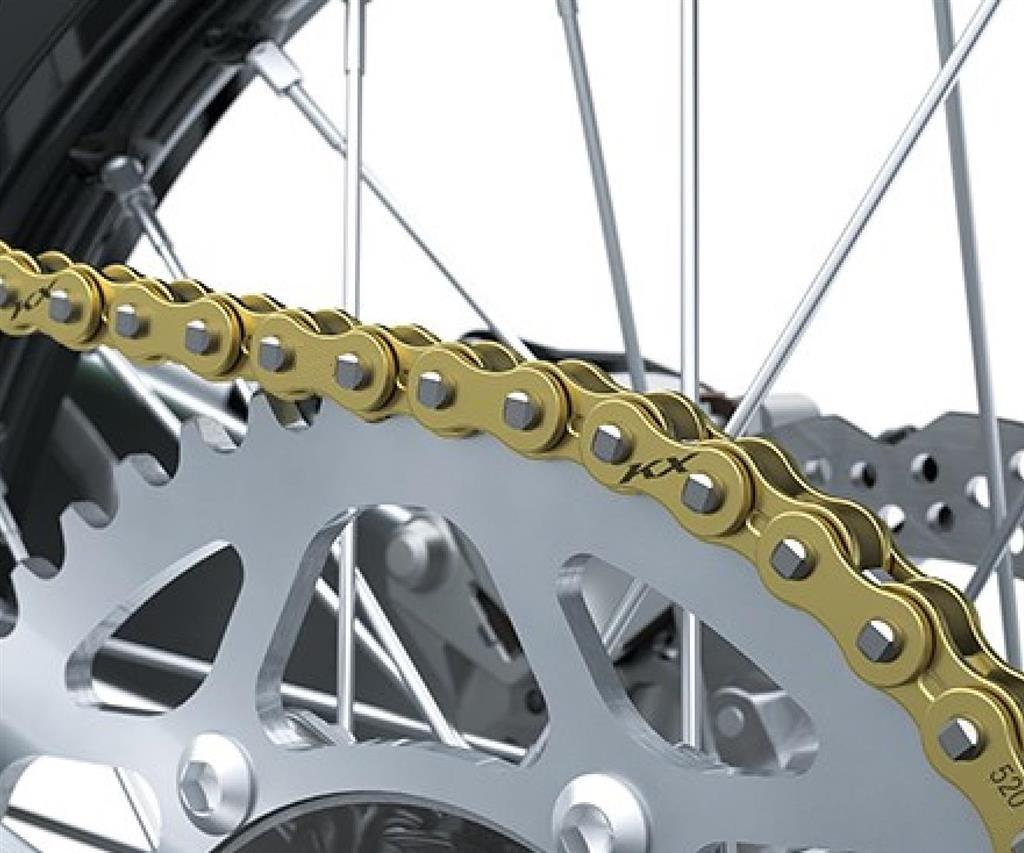 The Kawasaki gold 520 chain is designed for KX motocross and enduro racing bikes.