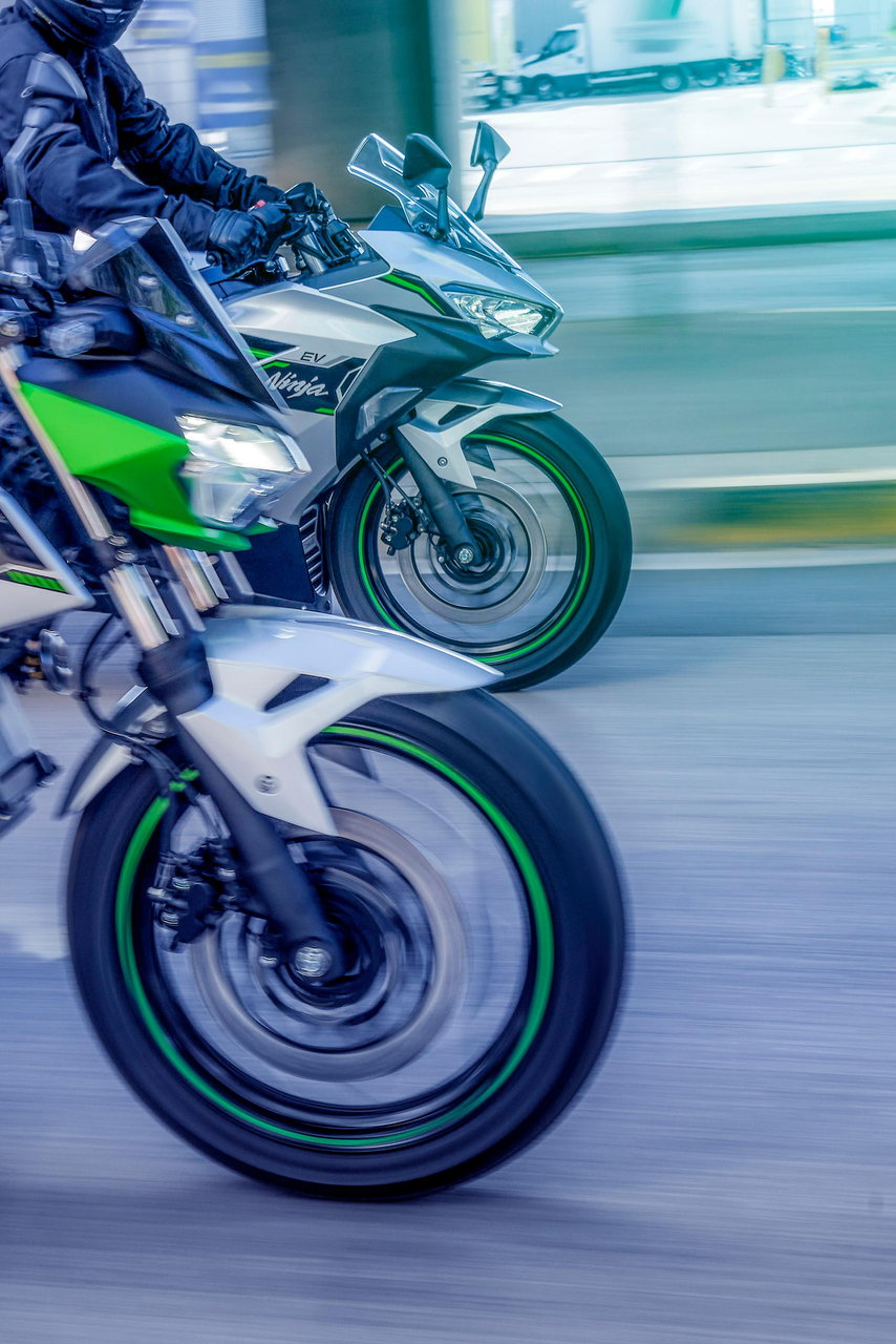 Propulsées par un moteur électrique, la Ninja et la Z e-1 ne produisent aucune émission lorsqu’elles roulent.
