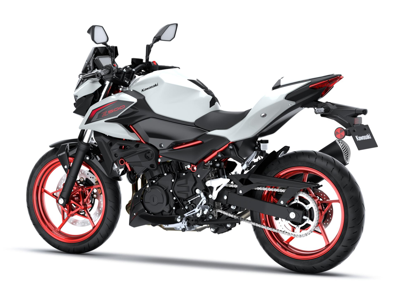 Quel que soit l’angle sous lequel on observe la Z500, son visage avant distinctif et ses lignes fluides et élégantes montrent clairement qu’il s’agit d’un membre de la famille Z, avec un look de grosse cylindrée. La forme de l'habillage crée une sensation d’unité avec le pilote, lui permettant de se sentir en harmonie avec la moto.