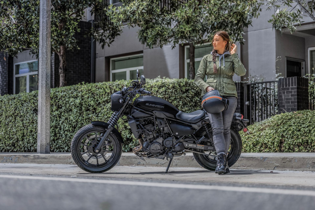 Avec une hauteur de selle de 735 mm, l’Eliminator offre la hauteur de siège la plus basse parmi les modèles routiers Kawasaki de 250 à 500 cm³, assurant une bonne stabilité au sol. Les selles accessoires hautes et basses permettent à un large éventail de pilotes de profiter de l’Eliminator avec confiance et confort.