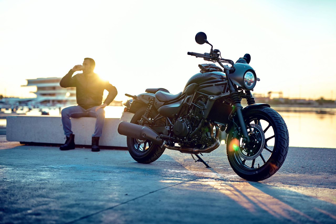 Une réinterprétation moderne du style long et bas de l’Eliminator originale est complétée par une polyvalence qui s’adapte à tous les modes de vie. Les lignes horizontales qui guident le regard de l’avant vers l’arrière, la selle basse et le guidon bas et plat suggèrent le potentiel de conduite dynamique de la nouvelle Eliminator et une maniabilité légère, comme si elle pouvait glisser légèrement sur le sol.