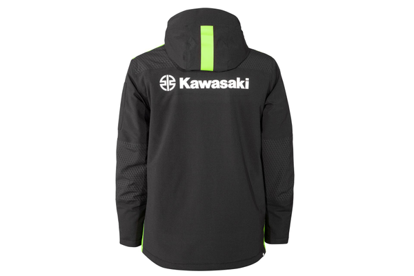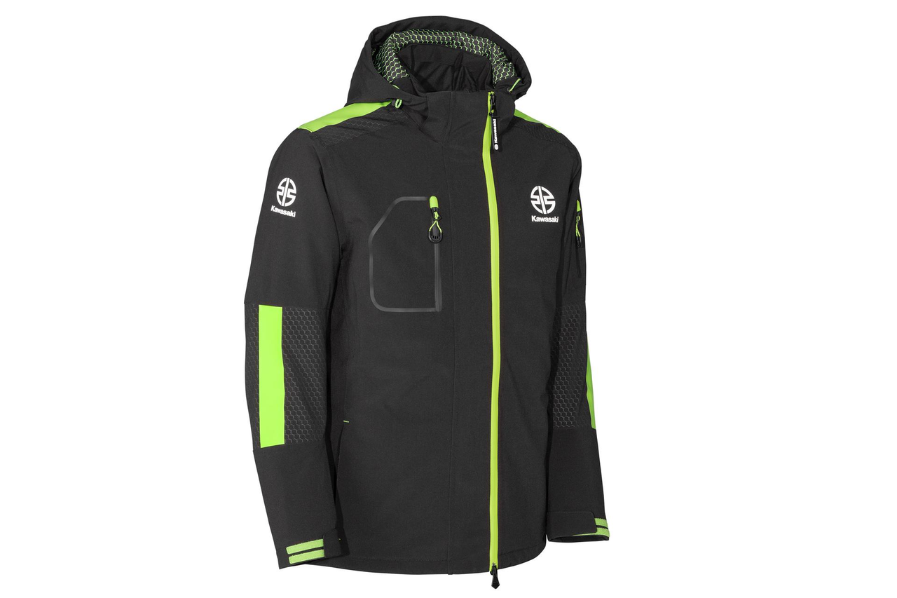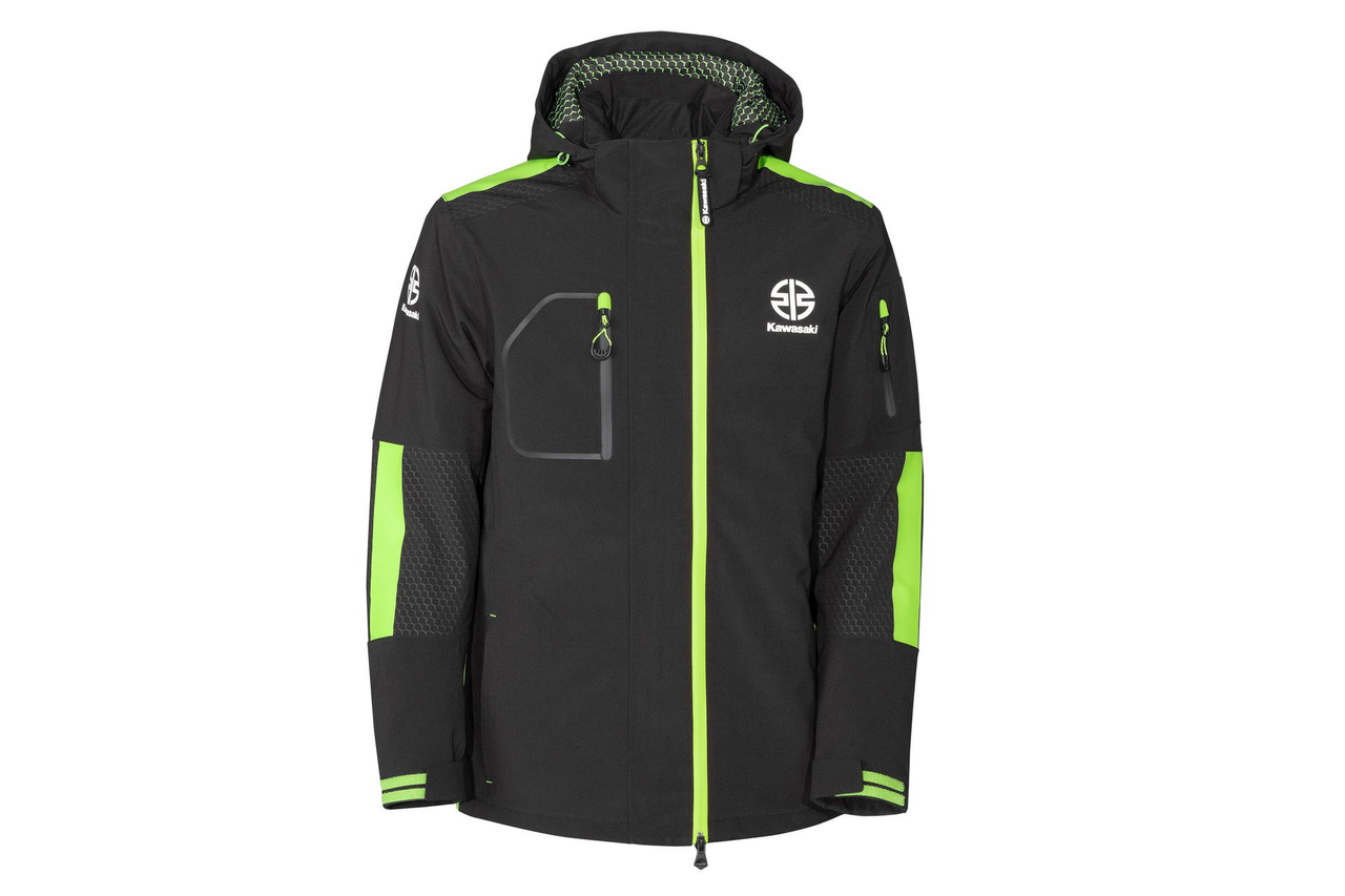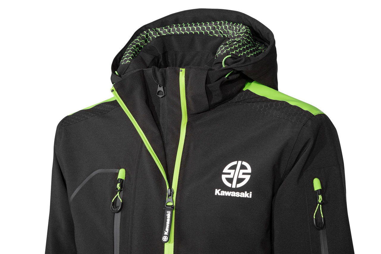 Veste matelassée imperméable avec capuche amovible, poches zippées à l’intérieur et à l’extérieur ainsi que poignets ajustables par Velcro. Les coutures sont étanchées, et la doublure thermique matelassée en forme d’hexagone apporte chaleur et confort. L’ouverture avant est zippée des deux côtés. La capuche amovible est doublée d’un imprimé hexagonal vert, tandis que les épaules et les coudes présentent un motif hexagonal gris. Des détails verts imprimés ajoutent une touche dynamique à cette veste. Composée de 96 % polyester et 4 % élasthanne, elle intègre une membrane TPU offrant une imperméabilité de 8000 mm et une respirabilité de 3000 mm, assurant une protection efficace contre l’humidité.