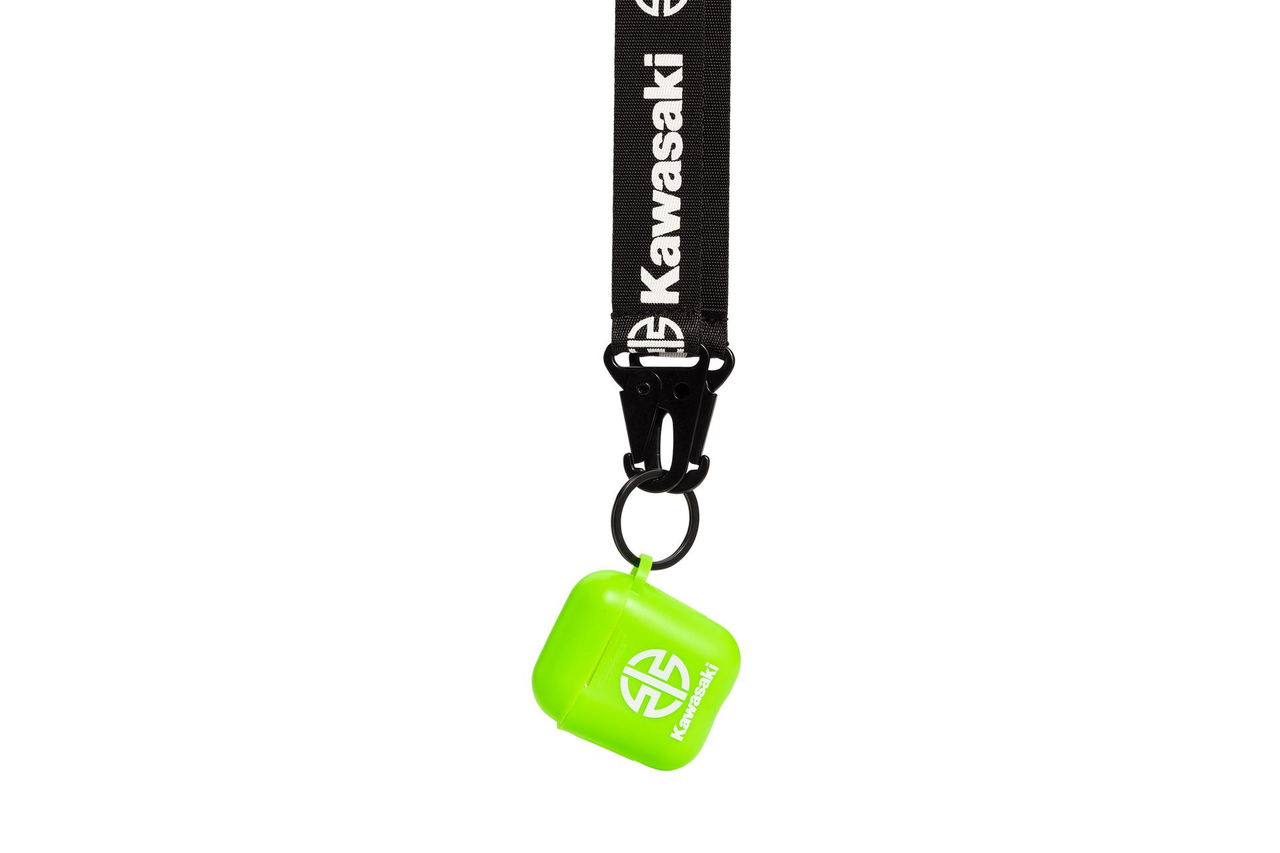 Housse adaptée au support AirPods, fixé à un lanyard avec clip de sécurité. Fabriquée en silicone.