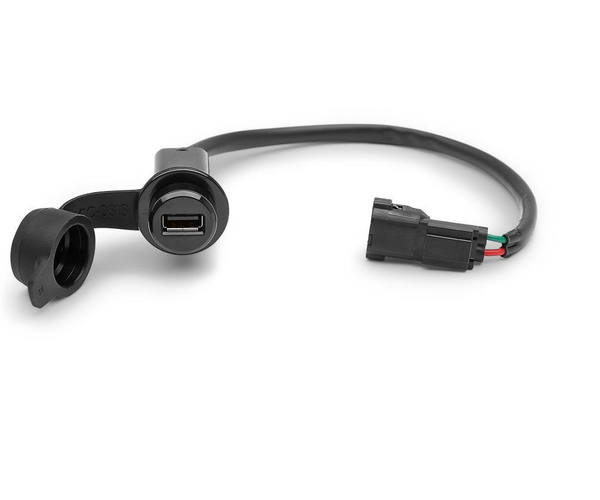 Prise USB-A femelle 5V montée sous la selle arrière, idéale pour recharger votre téléphone ou d’autres appareils électroniques.