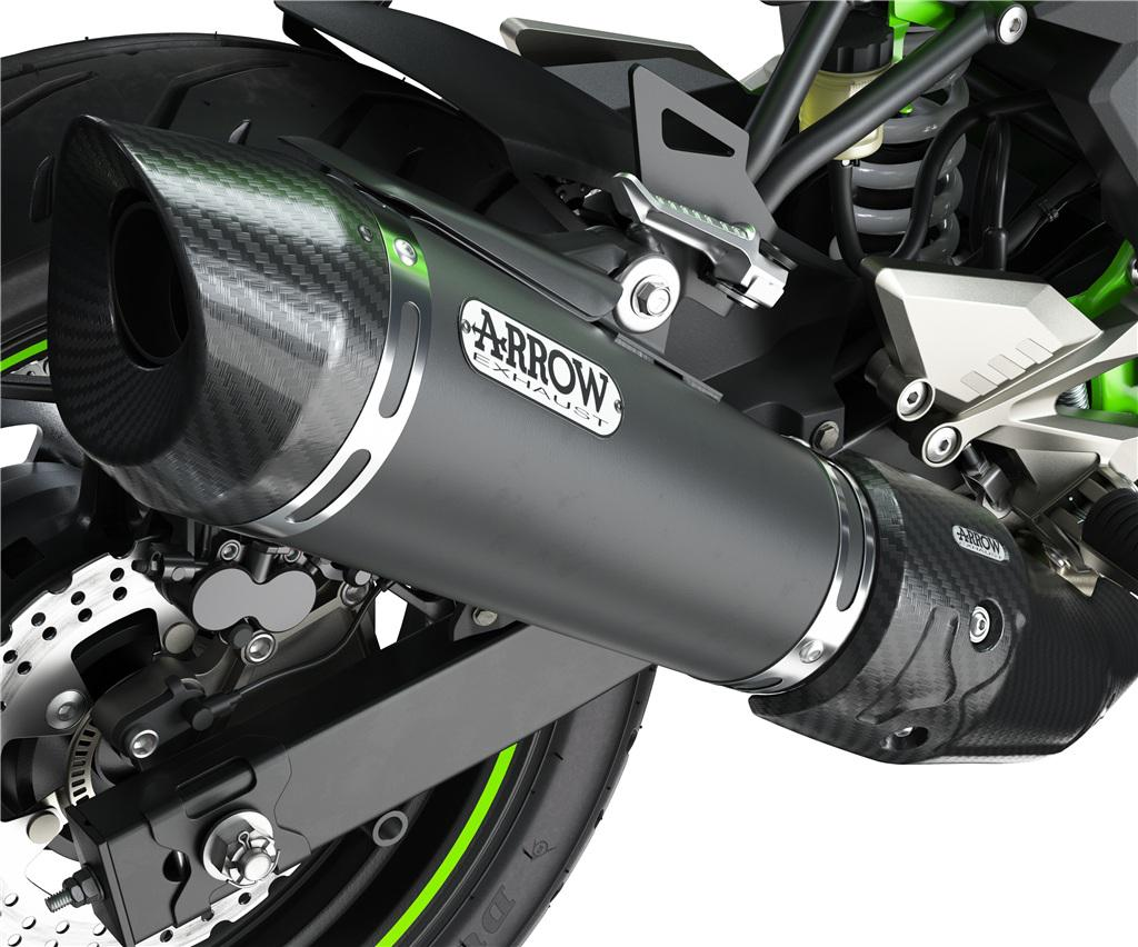 Entièrement conforme à la norme Euro 5, le système d’échappement est homologué (WVTA) et approuvé ECE grâce à une collaboration officielle entre Kawasaki Motors Europe et Arrow Special Parts. Il est livré avec un protège‑chaleur en fibre de carbone, offrant une protection supplémentaire ainsi qu’une touche esthétique raffinée.