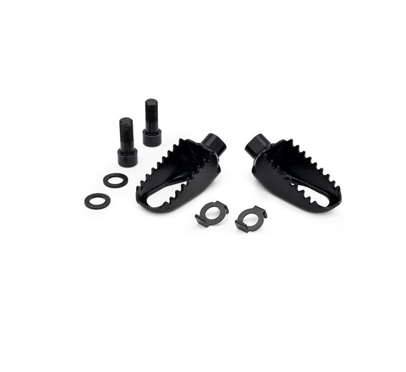 Marchepieds accessoires en acier noir de style motocross pour remplacer les marchepieds « vélo » de l'Elektrode. Les dents surélevées offrent une meilleure adhérence et un contrôle maximal de la moto.